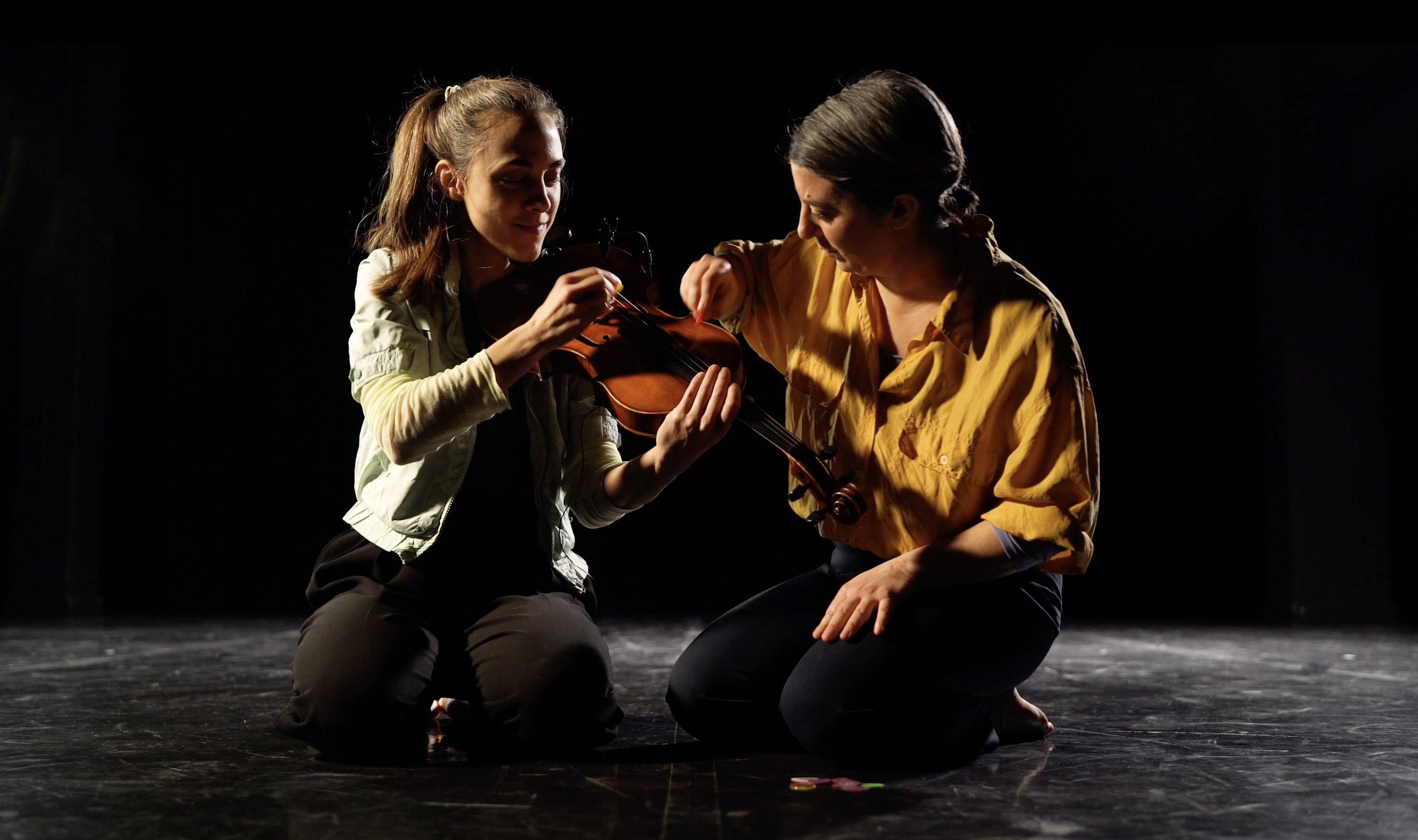 CRÉATION JEUNE PUBLICPizzicato est une performance sonore et dansée, qui ouvre un dialogue subtil et organique entre musique et danse pour les plus petits. Une altiste et une danseuse évoluent comme deux exploratrices fraîchement arrivées sur Terre, découvrant peu a peu les sons cachés dans les objets du quotidien. Transformant l’alto en terrain d’expérimentation ludique, Pizzicato nous montre que l’innovation sonore peut être à la fois exigeante et accessible, radicale et joyeuse, savante et profondément humaine.